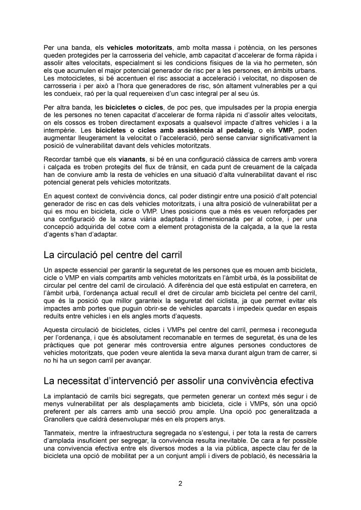 Amb l’objectiu de donar una resposta articulada a les situacions d’assetjament vial que puguin patir les persones conductores de bicicletes o VMP per part de persones conductores de vehicles motoritzats Granollers Pedala va proposar fa unes setmanes la definició i aprovació d’un protocol per part de tots els grups polítics de l’Ajuntament que el passat dimarts 30 de març, finalment, es va aprovar al ple ordinari amb el vot favorable de tots els grups i l’abstenció de Primàries.