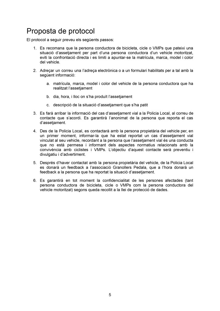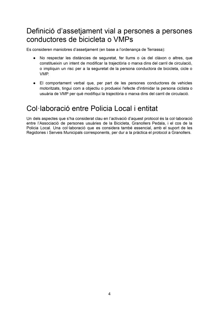 - Prevenir les conductes d’assetjament vial a ciclistes o persones amb VMPs.